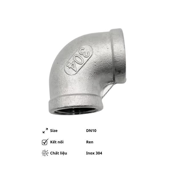 Thông số kỹ thuật chi tiết cút 90° ren trong công nghiệp SCH10 Inox304